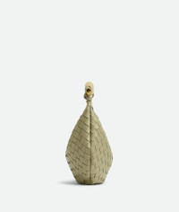 Bag made from supple lambskin leather using Intrecciato Craftsmanship featuring sculptural Product Details - Small Intrecciato leather bag with metallic top handle - Single compartment - Magnetic closure -The metallic handle is crafted by artisans and showcases nuances and engraved markings making each piece unique - Material: Lambskin - Lining: Lambskin bonded Intrecciato - Color: Travertine - Hardware: Brass finish - Height: 20 cm | 7.9" - Width: 33 cm | 13" - Depth: 4 cm I 1.6" - Handle drop: 12 cm | 4.7" - Made in: Italy - Product code: 716082VCPP12929 Size & Fit - Fits iPhone 15 Pro Max, a credit card case, airpods and keys.