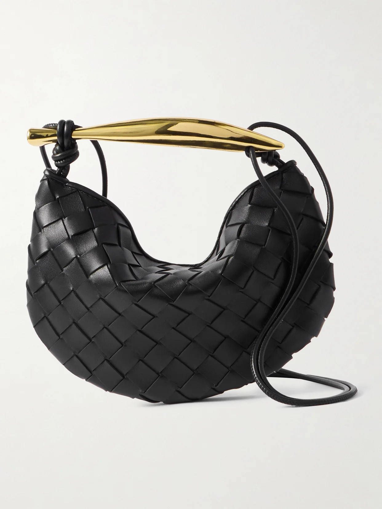 Bottega Veneta's signature intrecciato weave is an unmistakable example of the house's intricate time-honored craftsmanship. This 'Sardine' shoulder bag is woven from strips of supple leather and hangs from a sculptural gold-tone top handle and comes with knotted shoulder straps. Stow your cardholder, phone and keys inside. Lower-Impact Materials. This product is made using at least 50% lower-impact materials or ingredients. Find out more about our NET SUSTAIN criteria here.