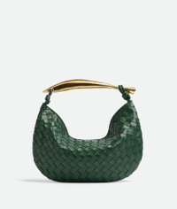 • Small intrecciato leather bag with metallic top handle • Single compartment • Magnetic closure • The metallic handle is crafted by artisans and showcases nuances and engraved markings making each piece unique. Material: 100% Lambskin • Lining: Unlined • Color: Raintree • Hardware: Muse Brass finish • Height: 20 cm | 7.9" • Width: 33 cm | 13" • Depth: 4 cm | 1.6" • Handle drop: 12 cm | 4.7" Made in: Italy