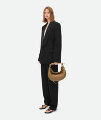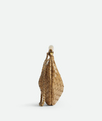 Intrecciato leather bag with sculptural metallic top handle and tubular leather braided Product Details - Small Intrecciato leather bag with metallic top handle enriched by a shoulder braided leather chain - Single compartment - Magnetic closure -The metallic handle is crafted by artisans and showcases nuances and engraved markings making each piece unique - Material: Lambskin - Lining: Lambskin bonded Intrecciato - Color: Dark Praline - Hardware: Brass finish - Height: 20 cm | 7.9" - Width: 33 cm | 13" - Depth: 4 cm | 2.6" - Handle drop: 12 cm | 4.7" - Strap drop: 35 cm | 13.8" - Made in: Italy - Product code: 776768VCPP19893