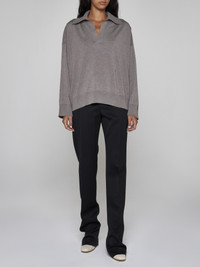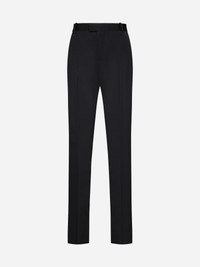 Bottega Veneta’s black wool slim-fit trousers featuring belt loops, concealed hook, button and zip fastening, side pockets, back welt pocket and straight leg with ironed crease. Color: Black Size and fit: Model is 175 cm tall and wearing a size IT 40 Composition: 100% wool Country of manifacture: Italy ID designer: 708384VKIS01000