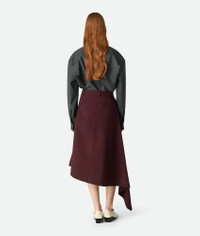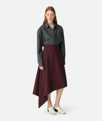 Midi skirt with asymmetrical silhouette in lightweight sartorial wool. Product Details - Lightweight sartorial wool asymmetrical midi skirt - Zip, hook and button closure - Material: 100% Wool - Color: Aubergine - Made in: Italy - Product code: 832869V5C606840 Size & Fit - Model is 177 cm | 5'9" and is wearing a Bottega Veneta size 38