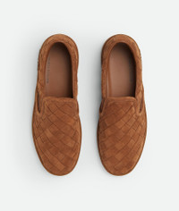 Slip-on sneaker realised with all-over Intrecciato craftsmanship in soft suede. Product Details - Intrecciato suede slip-on sneaker - Material: suede calfskin - Lining: Calfskin - Color: Caramel - Rubber outsole - Made in: Italy - Product code: 780530V3QE07665