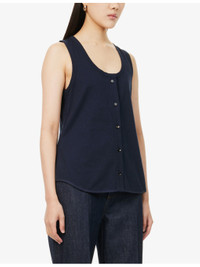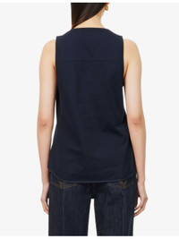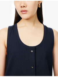PRODUCT DETAILS - Bottega Veneta cotton-jersey top - 100% cotton - Exposed button fastening at front - Relaxed fit, scoop neck, sleeveless, brand embroidery at front, curved hem - Machine wash at 30°C - Made in Italy - True to size - Model is 5ft 10in/1.78m and wears a size small - Lightweight, stretchy Ref: R04382468