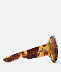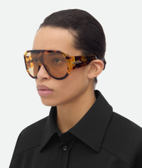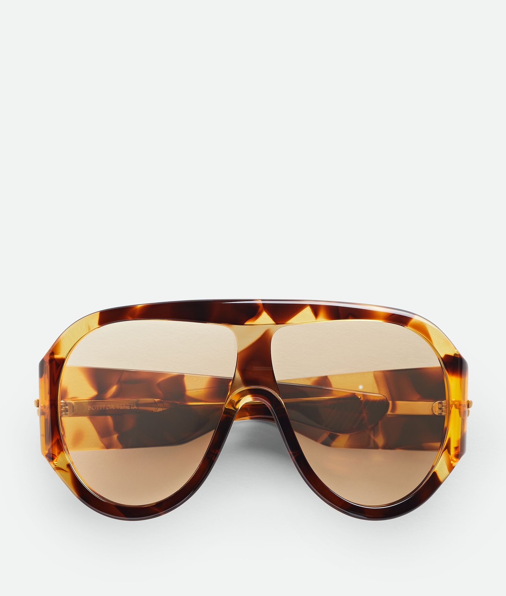 Shield sunglasses crafted from Eastman Acetate Renew, an acetate with 27% recycled Product Details - Lenses made from polyamide with 39% bio-based material - BV1345S 002 - Material: Eastman Acetate Renew - Color: Havana/Brown - Made in: Japan - Product code: 810162V2Q302900