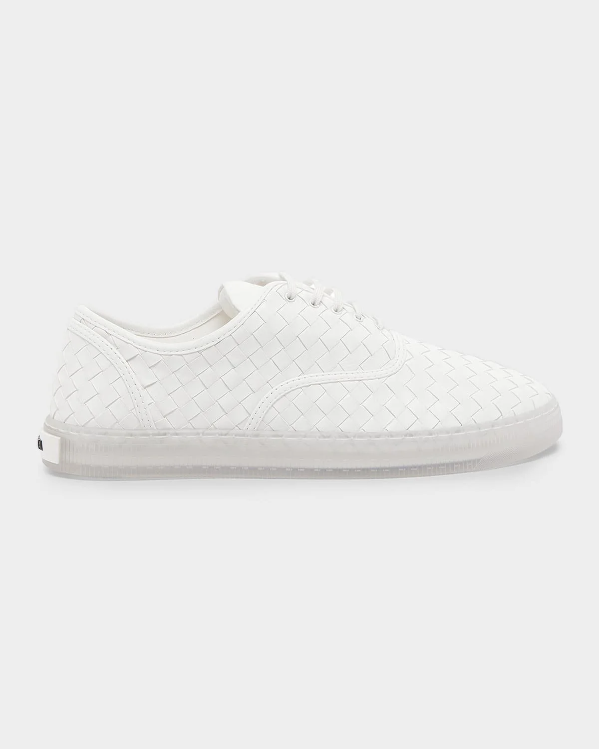Bottega Veneta & apos;s "Serena" low-top sneakers are crafted of leather and feature the brand & apos;s signature Intrecciato weave pattern & nbsp; Flat heel & nbsp; Round toe Lace-up vamp Leather lining Rubber outsole Made in Italy