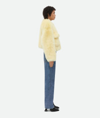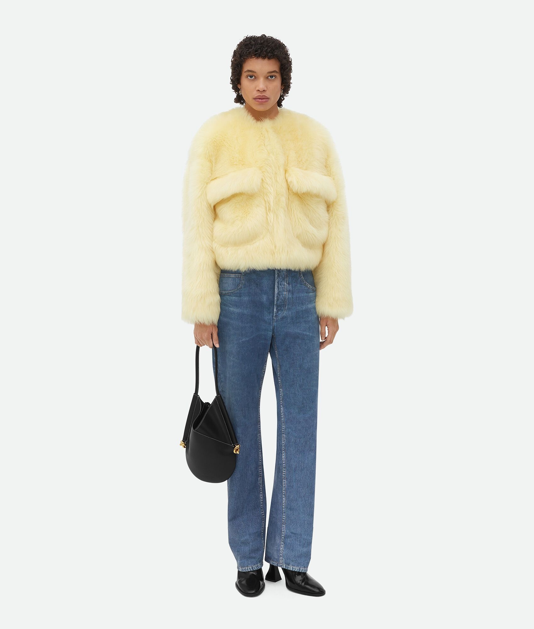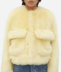 Cropped blouson in soft Toscana shearling. Product Details - Toscana shearling cropped blouson - Hook closure - Regular fit - Material: 100% Lambskin - Color: Pale Yellow - Made in: Italy - Product code: 773232V27W07365 Size & Fit - Model is 179 cm | 5'10" and is wearing a Bottega Veneta size 38