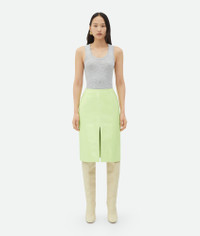 Shiny textured leather midi skirt. Product details • Shiny textured leather midi skirt • Zip closure • Unlined Material: 100% Lambskin • Color: Fennel Made in: Italy Size & fit • Model is 177 cm | 5'9" and is wearing a Bottega Veneta size 38