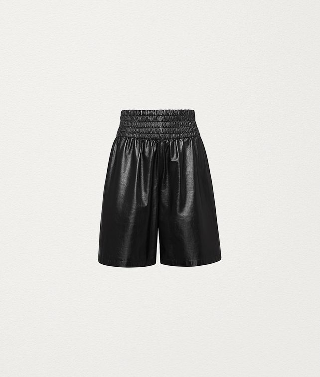 • Shorts in shiny leather • Elasticated waist and exaggerated waistband • Knee-length • Pockets at sides • Designed for a loose fit DETAILS Composition: 100% Lambskin Color: Nero Made in Italy