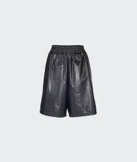 • Shiny leather shorts • Elasticized waistband • Unlined • Relaxed fit Material: 100% Lambskin • Color: Black Made in: italy