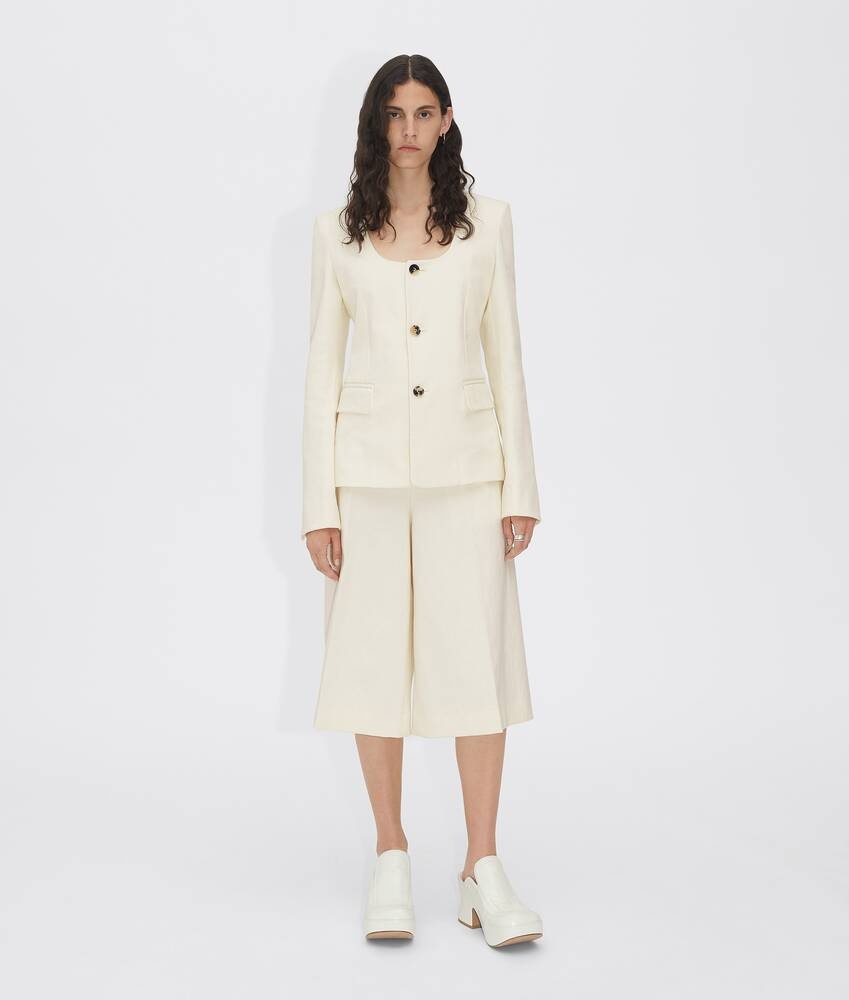• Stretch linen canvas wide leg shorts • Zipper with button and hook closure Material: 97% Linen 3% Elastane • Color: Chalk Made in: italy