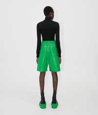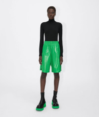 • Shiny leather shorts • Elasticized waistband • Unlined • Relaxed fit Material: 100% Lambskin • Color: Parakeet Made in: Italy
