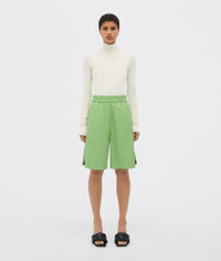 • Shiny leather shorts • Elasticated waistband • Unlined • Relaxed fit Material: 100% Lambskin • Color: Pistachio Made in: Italy
