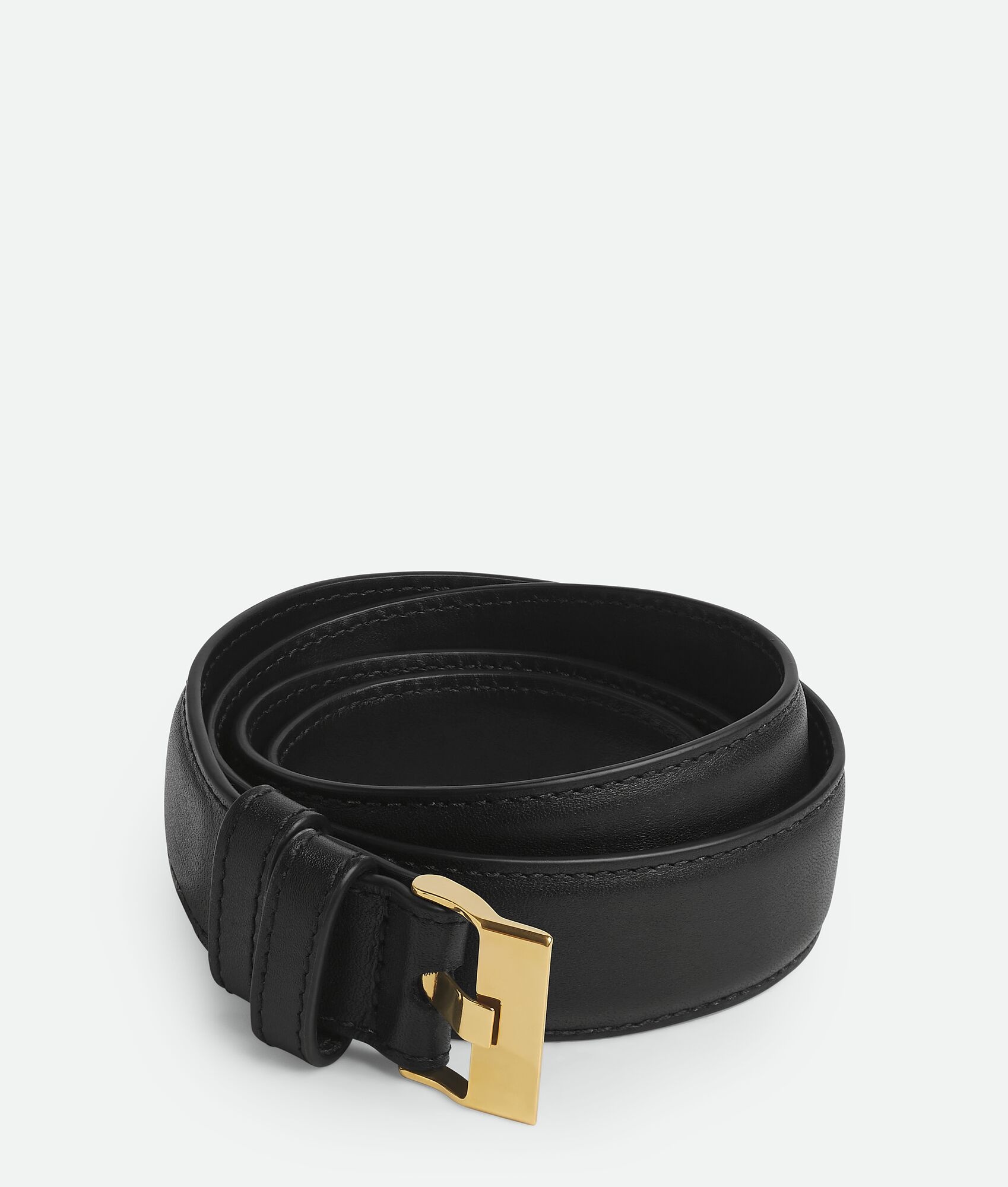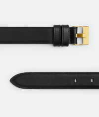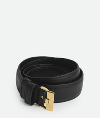 Leather belt. Product details • Leather belt • Prong closure Material: 100% Calfskin • Lining: Calfskin • Color: Black • Hardware: Muse brass finish • Height: 2.5 cm | 1" • Depth: 0.5 cm | 0.2" Made in: Italy