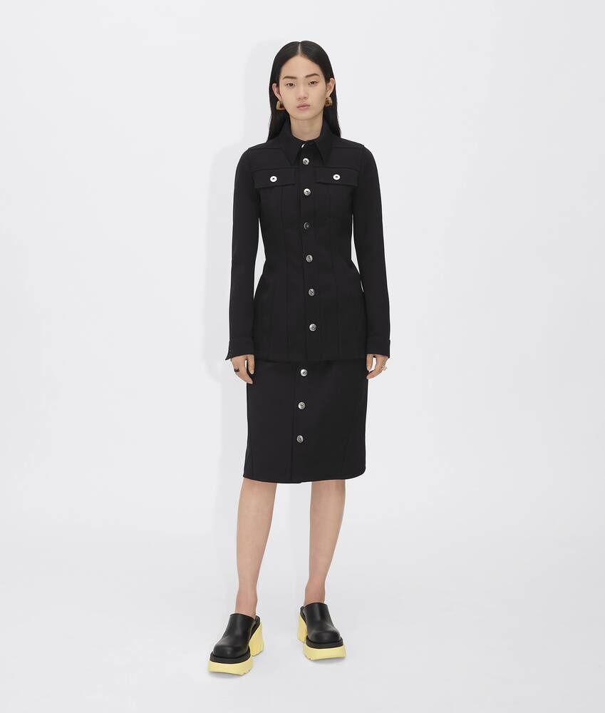 • Double cavalry stretch wool skirt • Button closure Material: 90% Virgin Wool 8% Polyamide 2% Elastane • Color: Black Made in: italy
