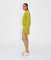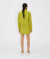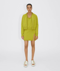 • Medium weight wool skirt • Hand-crocheted chain trim • Elastic waistband • Unlined Material: 100% Wool • Color: Kiwi Made in: italy