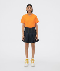 • Metallic denim twill pleated skirt • Zip closure • Fully lined Material: 86% Cotton, 14% Metal Fiber • Color: Indigo Made in: Italy