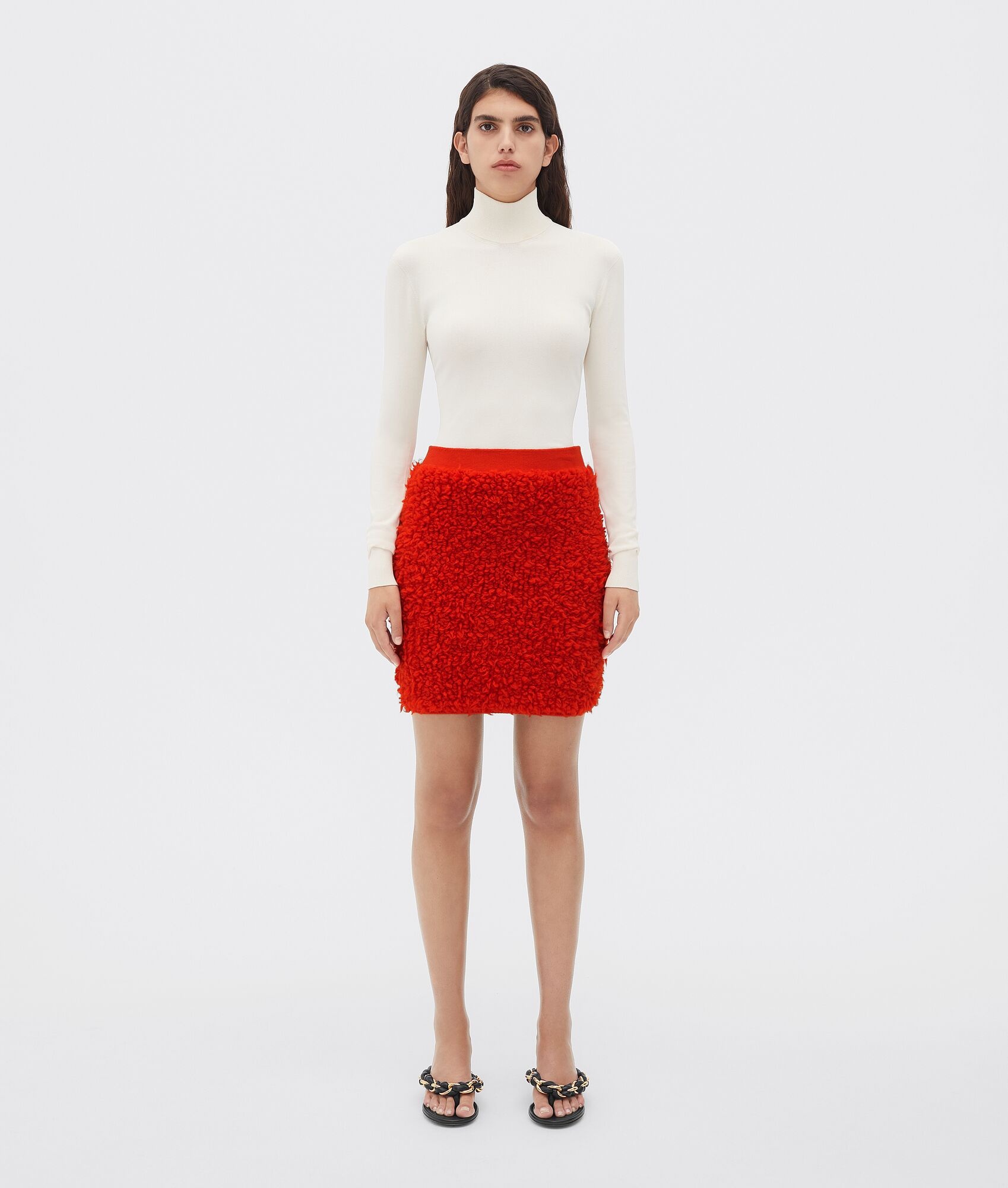 • Medium weight wool and mohair blend skirt • Elasticated waistband Material: 78% Wool, 12% Mohair, 7% Polyamide, 2% Polyester, 1% Elastane • Color: Burst Made in: Italy