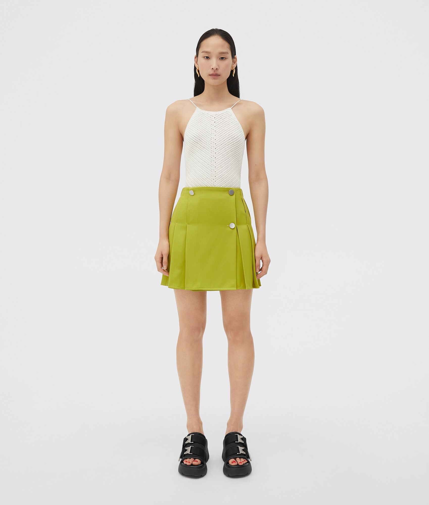 • Wool gabardine pleated skirt • Button closure Material: 100% Wool • Color: Kiwi Made in: italy