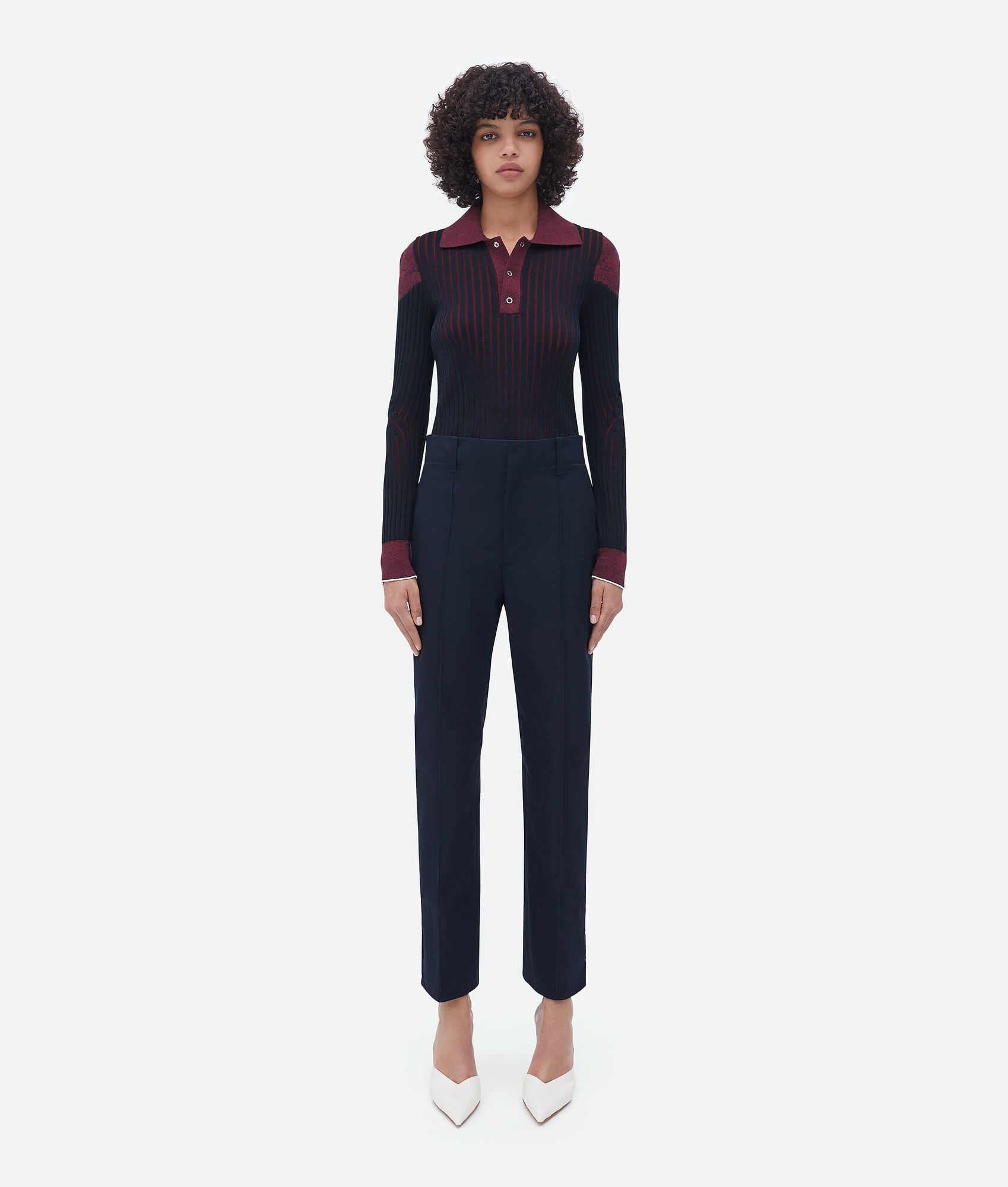 • Cotton twill slim pants • Zipper, button, and hook closure Material: 100% Cotton • Color: Midnight Blue Made in: Italy