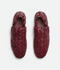Intrecciato leather slippers. Product details • Intrecciato leather slippers Material: 100% Lambskin • Unlined • Color: Merlot • Leather outsole Made in: Italy
