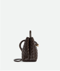 Top handle bag in supple Intrecciato leather with signature knot detail and sliding Product Details - Small Intrecciato leather top handle bag with sliding cross-body strap - Compartmented interior with one zippered pocket, two open pockets - Magnetic closure - Material: lambskin - Lining: Lambskin bonded Intrecciato - Color: Fondant - Hardware: Brass finish - Height: 20 cm | 7.9" - Width: 25 cm | 9.8" - Depth: 10 cm | 3.9" - Handle drop: 6 cm | 2.4" - Strap drop: 50 cm | 19.7” - Made in: Italy - Product code: 766014VCPP12272
