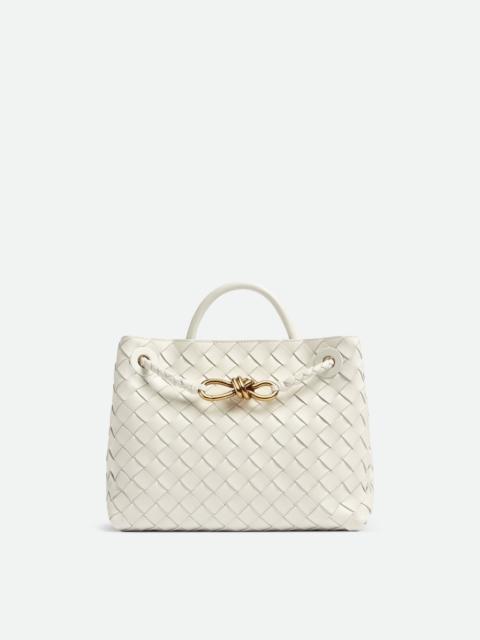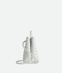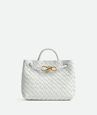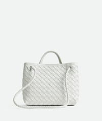 Product Details - Small Intrecciato leather top handle bag with sliding cross-body strap - Compartmented interior with one zipped pocket, one open pocket - Magnetic closure - Lining: Lambskin bonded Intrecciato - Color: Hoarfrost - Hardware: Brass finish - Made in: Italy - Product code: 766014VCPP11951 Material - Material: Lambskin Size & Fit - Height: 20 cm (7.9") - Width: 25 cm (9.8") - Depth: 10 cm (3.9") - Handle drop: 6 cm (2.4") - Strap drop: 50 cm (19.7")