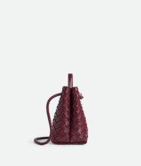 Top handle bag meticulously crafted in supple Intrecciato nappa leather with sliding Product details • Small Intrecciato leather top handle bag with sliding cross-body strap • Compartmented interior with one zippered pocket, two open pockets • Magnetic closure Material: 100% Lambskin • Lining: Lambskin bonded Intrecciato • Color: Barolo • Hardware: Brass finish • Height: 20 cm | 7.9" • Width: 25 cm | 9.8" • Depth: 10 cm | 3.9" • Handle drop: 6 cm | 2.4" • Strap drop: 50 cm | 19.7" Made in: Italy