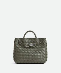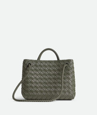 Product Details - Small Intrecciato leather top handle bag with sliding cross-body strap - Compartmented interior with one zipped pocket, one open pocket - Magnetic closure - Lining: Lambskin bonded Intrecciato - Color: Pickle - Hardware: Vintage silver - Made in: Italy - Product code: 766014VCPP13297 Material - Material: Lambskin Size & Fit - Height: 20 cm (7.9") - Width: 25 cm (9.8") - Depth: 10 cm (3.9") - Handle drop: 6 cm (2.4") - Strap drop: 50 cm (19.7")