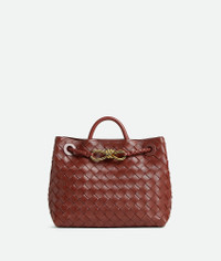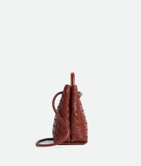 Top handle bag in supple Intrecciato leather with signature knot detail and sliding Product Details - Small Intrecciato leather top handle bag with sliding cross-body strap - Compartmented interior with one zippered pocket, two open pockets - Magnetic closure - Material: Lambskin - Lining: Lambskin bonded Intrecciato - Color: Sapele - Hardware: Muse Brass finish - Height: 20 cm | 7.9" - Width: 25 cm | 9.8" - Depth: 10 cm - Handle drop: 6 cm - Strap drop: 50 cm | 19.7” - Made in: Italy - Product code: 766014VCPP12507