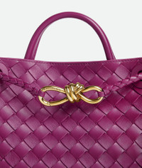 Product Details - Small Intrecciato leather top-handle bag with sliding cross-body strap - Compartmented interior with one zipped pocket, one open pocket - Magnetic closure - Lining: Lambskin bonded Intrecciato - Color: Beetroot - Hardware: Brass finish - Made in: Italy - Product code: 766014VCPP15231 Material - Material: Lambskin Size & Fit - Height: 20 cm | 7.9" - Width: 25 cm | 9.8" - Depth: 10 cm | 3.9" - Handle drop: 6 cm | 2.4" - Strap Drop: 50 cm | 19.7"