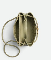 Top handle bag meticulously crafted from supple Intrecciato nappa leather with sliding Product details • Small Intrecciato leather top handle bag with sliding cross-body strap • Compartmented interior with one zippered pocket, two open pockets • Magnetic closure Material: Lambskin • Lining: Lambskin bonded Intrecciato • Color: Travertine • Hardware: Brass finish • Height: 20 cm | 7.9" • Width: 25 cm | 9.6" • Depth: 10 cm | 3.9" • Handle drop: 6 cm | 2.4" • Strap drop: 50 cm | 20" Made in: Italy