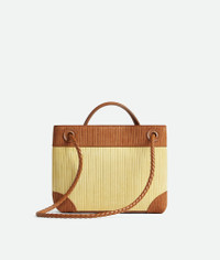 Product Details - Small bi-color corduroy effect suede top handle bag with sliding cross-body strap - Compartmented interior with one zipped pocket, one open pocket - Magnetic closure - Lining: Lambskin - Color: Butter/Amber - Hardware: Brass finish - Made in: Italy - Product code: 856004V65H19310 Material - Material: Calfskin Size & Fit - Height: 20 cm (7.9") - Width: 25 cm (9.8") - Depth: 10 cm (3.9") - Handle drop: 6 cm (2.4") - Strap drop: 50 cm (19.7")