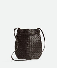 Product Details - Small Intrecciato leather bucket bag with sliding shoulder strap - Intrecciato leather internal pocket - Adjustable and detachable cross-body strap - Lining: Lambskin bonded Intrecciato - Color: Fondant - Hardware: Brass finish - Made in: Italy - Product code: 855759VCPP12272 Material - Material: Lambskin Size & Fit - Height: 30 cm (11.8") -Width: 18.5 cm (7.3") -Depth: 11 cm (4.3") -Handle drop: 25 cm (9.8") -Strap drop: 45 cm (17.7")