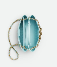 Top handle bag in supple Intrecciato leather with signature knot detail and sliding Product Details - Small Intrecciato leather top handle bag with sliding cross-body chain - Compartmented interior with one zippered pocket, two open pockets - Magnetic closure - Material: Lambskin - Lining: Lambskin bonded Intrecciato - Color: Zenith - Hardware: Muse Brass finish - Height: 20 cm | 7.9" - Width: 25 cm | 9.8" - Depth: 110cm - Handle drop: 6cm - Strap drop: 50 cm | 19.7” - Made in: Italy - Product code: 786008VCPP14840