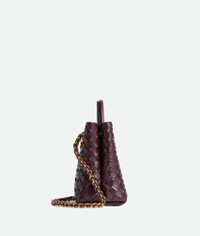 Product Details - Small Intrecciato leather top handle bag with chain strap - Compartmented interior with one zipped pocket, two open pockets - Magnetic closure - Lining: Lambskin bonded Intrecciato - Color: Dark Barolo - Hardware: Brass finish - Made in: Italy - Product code: 786008VCPP12264 Material - Material: Lambskin Size & Fit - Height: 20 cm (7.9") - Width: 25 cm (9.8") - Depth: 10 cm (3.9") - Handle drop: 6 cm (2.4") - Strap drop: 50 cm (19.7")