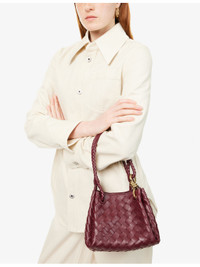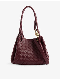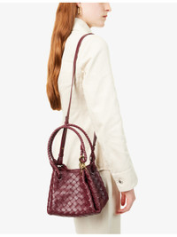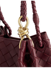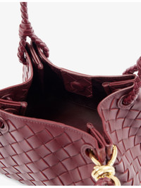 PRODUCT DETAILS - Bottega Veneta leather shoulder bag - 100% lamb leather - Double braided top handles, knot design plaque, detachable adjustable shoulder strap, all-over double-faced weave, all-over smooth leather, gold-toned hardware, one main compartment, internal debossed branding - Height 16cm, width 21cm, depth 17cm, handle drop 16cm, strap length 110cm, strap drop 53cm - Specialist leather clean - Made in Italy - Comes with a dust bag Ref: R04434417