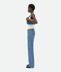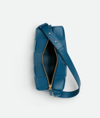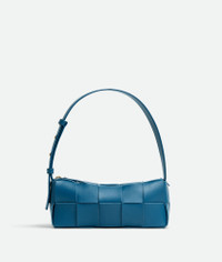 Shoulder bag with elongated brick silhouette realised with Intreccio craftsmanship Product details • Small Intreccio leather shoulder bag • Single interior zippered pocket • Zipper closure Material: 100% Lambskin • Lining: Lambskin bonded Intreccio • Color: Deep Pacific • Hardware: Gold finish • Height: 10 cm | 3.9" • Width: 23.5 cm | 9.3" • Depth: 10 cm | 3.9" • Strap drop: 20 cm | 7.9" Made in: Italy