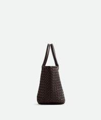 Intreccio leather tote bag. This bag is eligible for Certificate of Craft. Product Details - Small Intreccio leather tote bag - Detachable interior zipped pouch - Material: Lambskin - Lining: Lambskin bonded Intreccio - Color: Fondant - Hardware: Gold finish - Height: 20 cm | 7.9" - Width: 33 cm | 13" - Depth: 13 cm | 5.1" - Handle drop: 13 cm | 5.1" - Made in: Italy - Product code: 730297V1OW12132