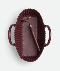 Intreccio leather tote bag. This bag is eligible for Certificate of Craft. Product Details - Small Intreccio leather tote bag - Detachable interior zipped pouch - Material: Lambskin - Unlined - Color: Barolo - Hardware: Gold finish - Height: 20 cm | 7.9" - Width: 33 cm | 13" - Depth: 13 cm | 5.1" - Handle drop: 13 cm | 5.1" - Made in: Italy - Product code: 730297V1OW12247 Size & Fit - Fits iPhone 15 Pro Max, a credit card case, airpods and keys.