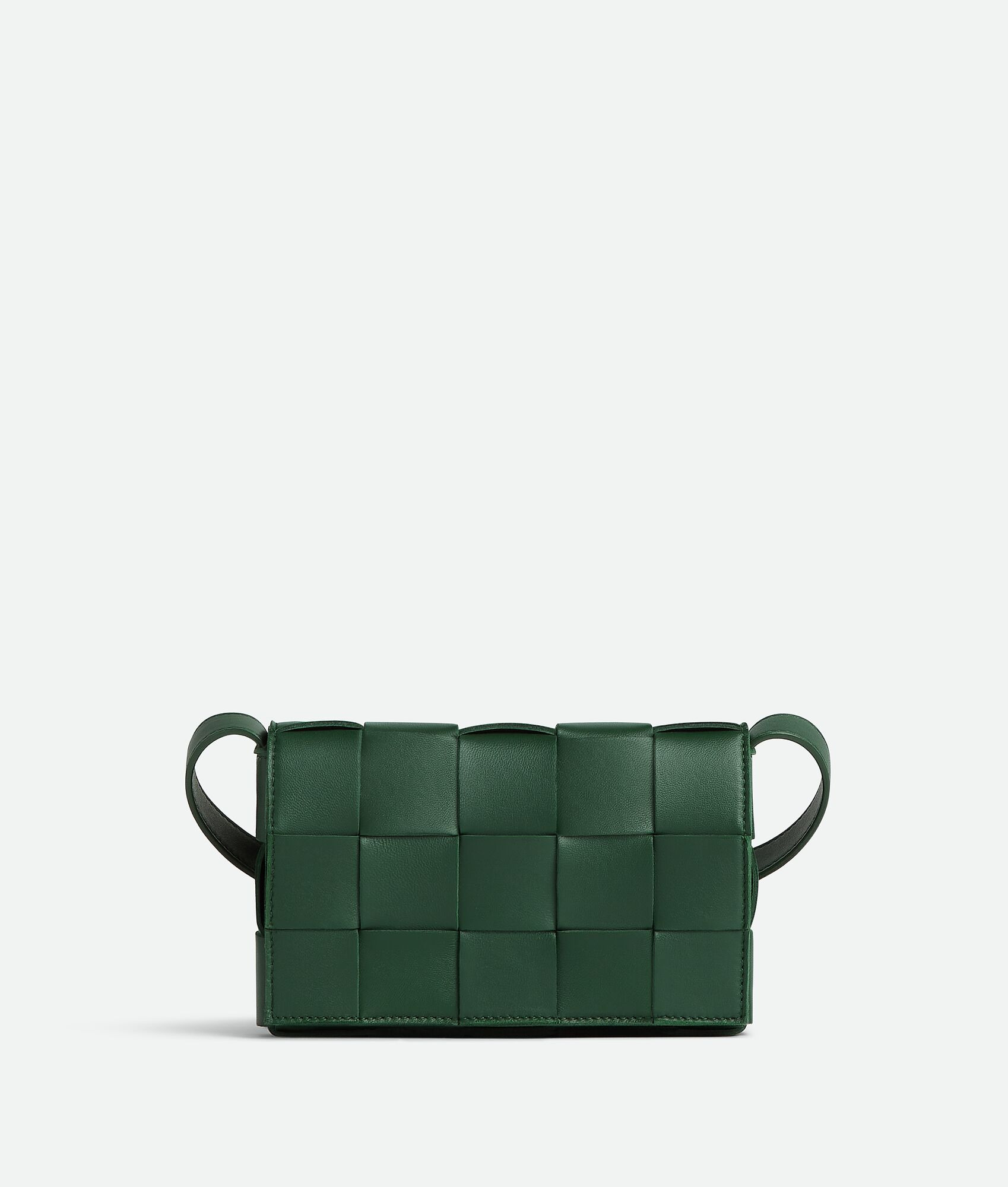 • Small intreccio leather crossbody bag • Single interior zip pocket • Magnetic closure Material: 100% Lambskin • Lining: Bonded lambskin • Color: Raintree • Hardware: Gold finish • Height: 12 cm | 4.7" • Width: 19 cm | 7.5" • Depth: 4 cm | 1.6" • Strap drop: 52 cm | 20.5" Made in: Italy
