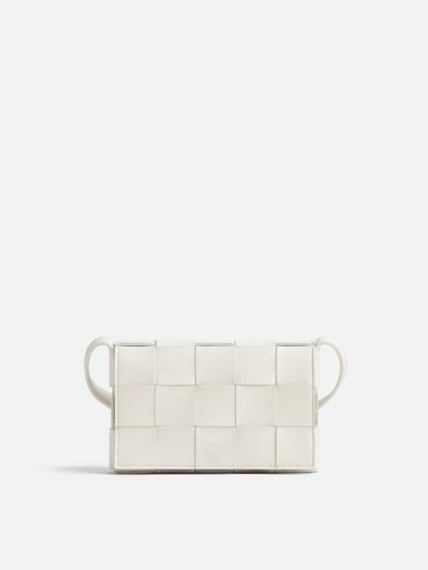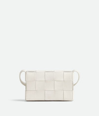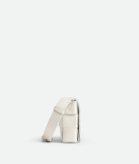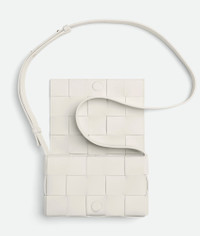 Cross-body bag made from soft lambskin leather using Intreccio craftsmanship. Product Details - Small Intreccio leather cross-body bag - Single interior zipped pocket - Magnetic closure - Material: Lambskin - Lining: Lambskin bonded Intreccio - Color: White - Hardware: Gold finish - Height: 12 cm | 4.7" - Width: 19 cm | 7.5" - Depth: 4 cm | 1.6" - Strap drop: 52 cm | 20.5" - Made in: Italy - Product code: 730848VMAY19009