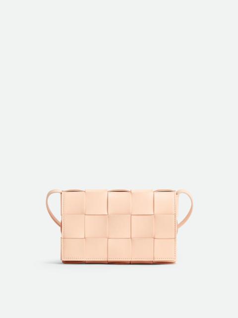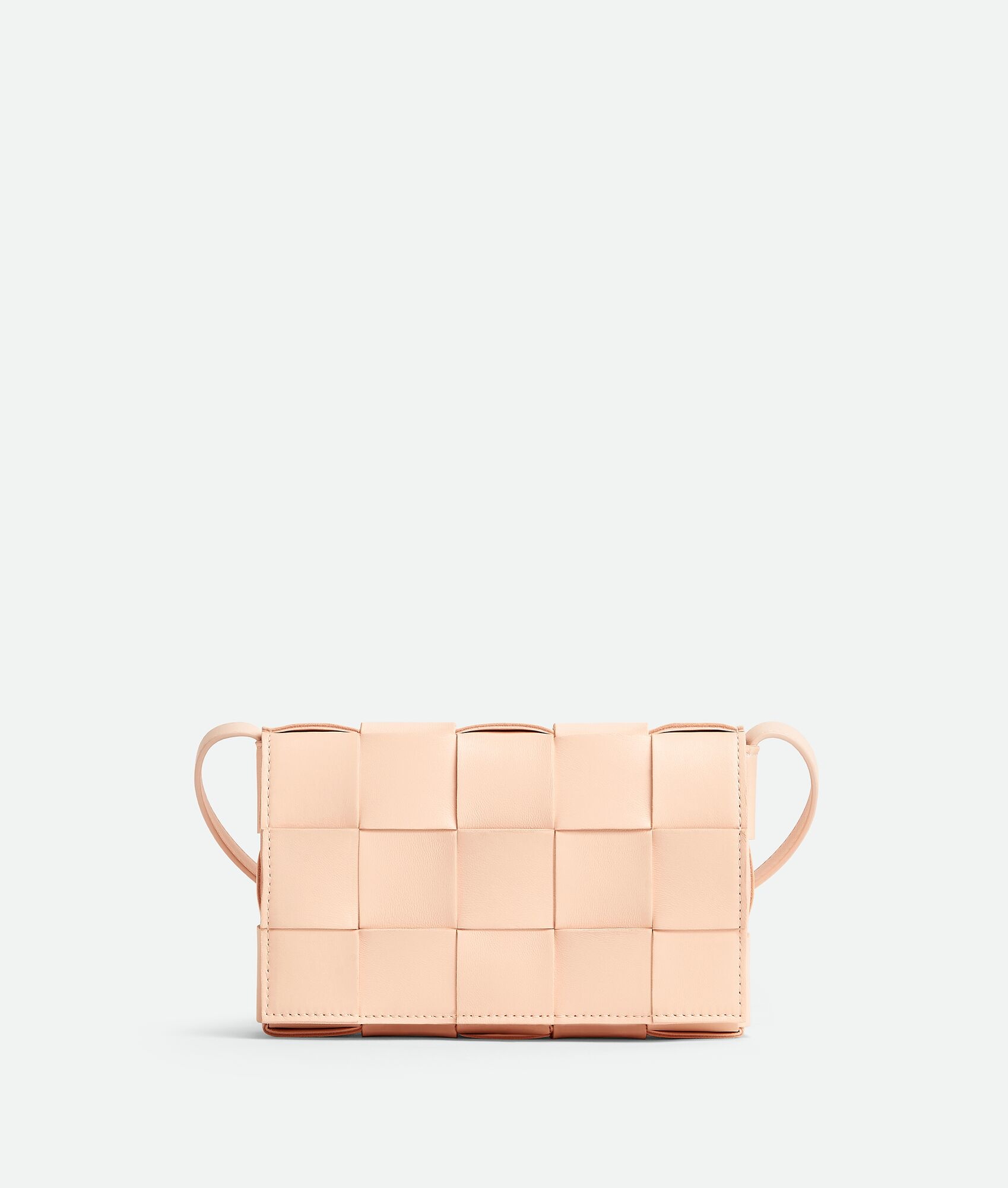 • Small Intreccio leather cross-body bag • Single interior zipper pocket • Magnetic closure Material: 100% Lambskin • Lining: Lambskin bonded Intreccio • Color: Macaroon • Hardware: Gold finish • Height: 12 cm | 4.7" • Width: 20 cm | 7.9" • Depth: 5 cm | 2" • Strap drop: 52 cm | 20.5" Made in: Italy