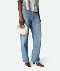 Top handle bag crafted in soft padded Intreccio leather with detachable strap. Product Details - Small padded Intreccio leather top-handle bag with detachable leather strap - Flap closure secured with a magnet - Material: Lambskin - Lining: Unlined - Color: Sea salt - Hardware: Brass finish - Height: 11 cm | 4.3" - Width: 23 cm | 9.1" - Depth: 8 cm | 3.1" - Handle drop: 8.5 cm | 3.3" - Strap drop: 60 cm | 23.6" - Made in: Italy - Product code: 805739V3RG19195 Size & Fit - Fits iPhone 16 Pro Max, a credit card case, airpods and keys.