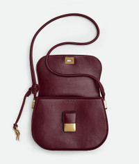 • Small leather crossbody bag • Single interior open pocket • Metal closure Material: 100% Calfskin • Lining: Lambskin • Color: Barolo • Hardware: Muse Brass finish • Height: 19.5 cm | 7.7" • Width: 26 cm | 10.2" • Depth: 6.5 cm | 2.6" • Strap drop: 45.5 cm | 17.9" Made in: Italy