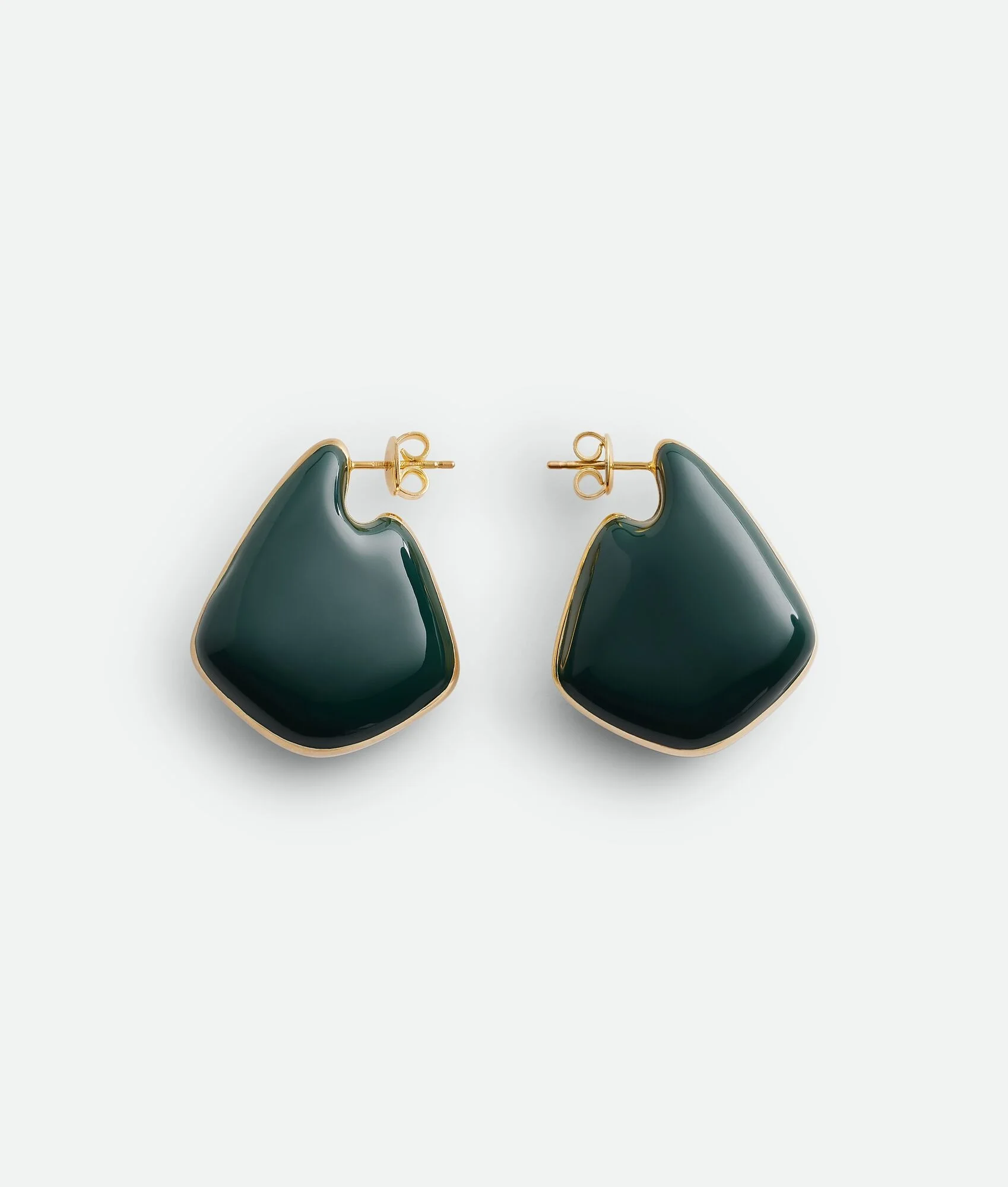 Geometric earrings in fin-inspired form, crafted in hand-enamelled 18k gold-finished Product Details - 18k gold-finish sterling silver earrings - Hand-enameled - Pin butterfly closure - External dimensions: 35.5 x 30.3 mm | 1.4" x 1.2" - Thickness: 12.8millimeters - Due to hygiene-related reasons, this piece may not be returned - Material: Sterling silver - Color: White/Dark Green - Made in: Italy - Product code: 786212VAHU43390