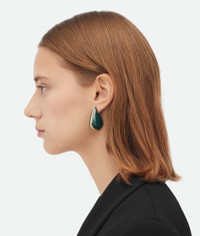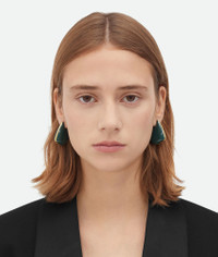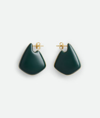Geometric earrings in fin inspired form, crafted in hand-enamelled 18k gold-finished Product Details - 18k gold-finish sterling silver small earrings - Hand-enameled - Pin butterfly closure - External dimensions: 35 x 29.7 mm | 1.4 x 1.2" - Thickness: 12.4 mm | 0.5" - Made with an electroforming technique - Material: Sterling silver - Color: Dark Green - Due to hygiene-related reasons, this piece may not be returned - Made in: Italy - Product code: 786212VAHU43350