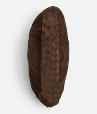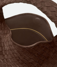 Shoulder bag with Intrecciato craftsmanship in smooth suede. Product Details - Small Intrecciato suede shoulder bag - One internal zipped pocket - Flap closure secured with magnet - Material: calfskin - Lining: Calfskin - Color: Fondant - Hardware: Brass finish - Height: 21 cm | 8.3" - Width: 46 cm | 18.1" - Depth: 10 cm | 3.9" - Handle drop: 20 cm | 7.9” - Made in: Italy - Product code: 796262V1QE32190