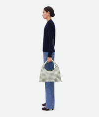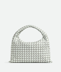 Shoulder bag realised with Intrecciato craftsmanship in bicolour calfskin leather Product details • Small Intrecciato leather shoulder bag with wavy bicolor Pavimento effect • One internal zippered pocket • Flap closure secured with magnet Material: 100% Calfskin • Lining: Calfskin • Color: Agate Grey/Glacier • Hardware: Brass finish • Height: 20.5 cm | 8.1" • Width: 41 cm | 16.1" • Depth: 7.5 cm | 3" • Handle drop: 16.5 cm | 6.5" Made in: Italy