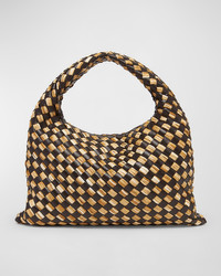 - Bottega Veneta "Hop" top handle bag in - intrecciato - metallic leather - Shoulder strap - Open top with magnetic closure - Approx. 8"H x 16.1"W x 3"D - Made in Italy